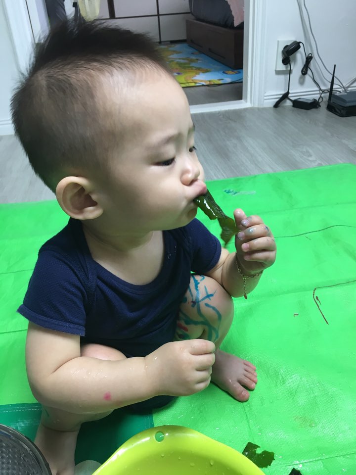 하정우 저리가라고 할 먹방을 보여주었던 미역놀이.(선생님이 특별히 집에서 아가들 먹을 좋은 미역을 따로 공수해주셨었네요)