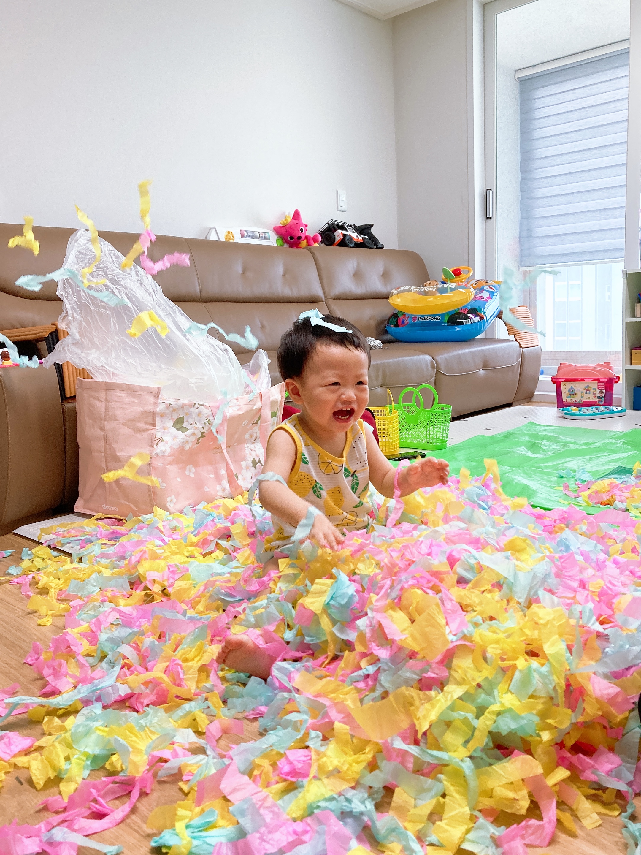 티슈로 재밌게 놀아봤어요><