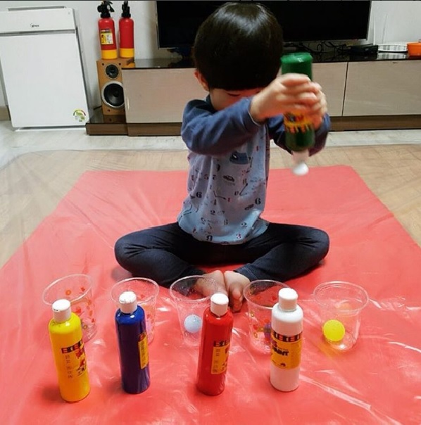 탱탱볼에 물감을 쭉쭉
