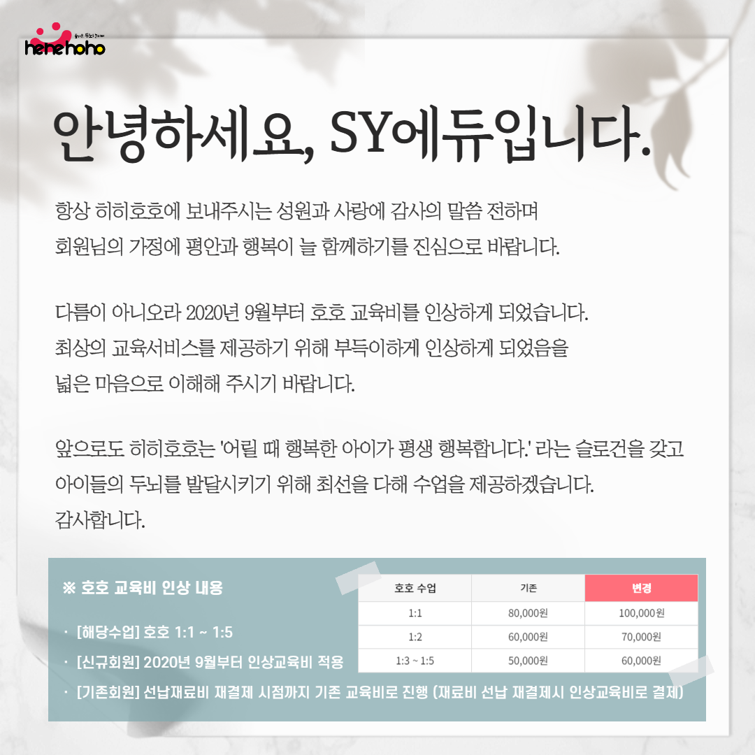 히히호호 "호호" 교육비 변동 안내건