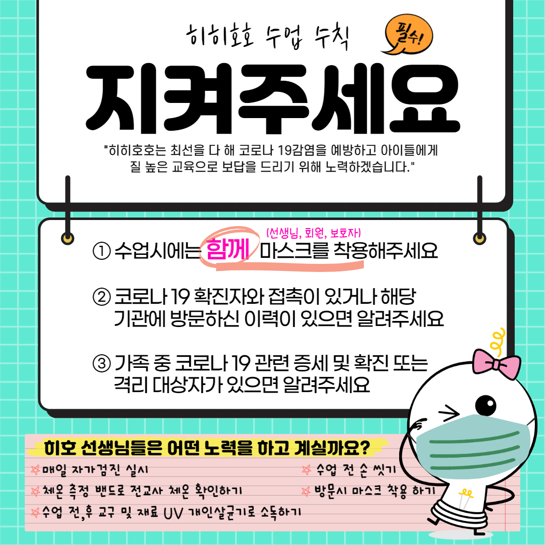 히히호호 수업 방역 수칙 함께 지켜요